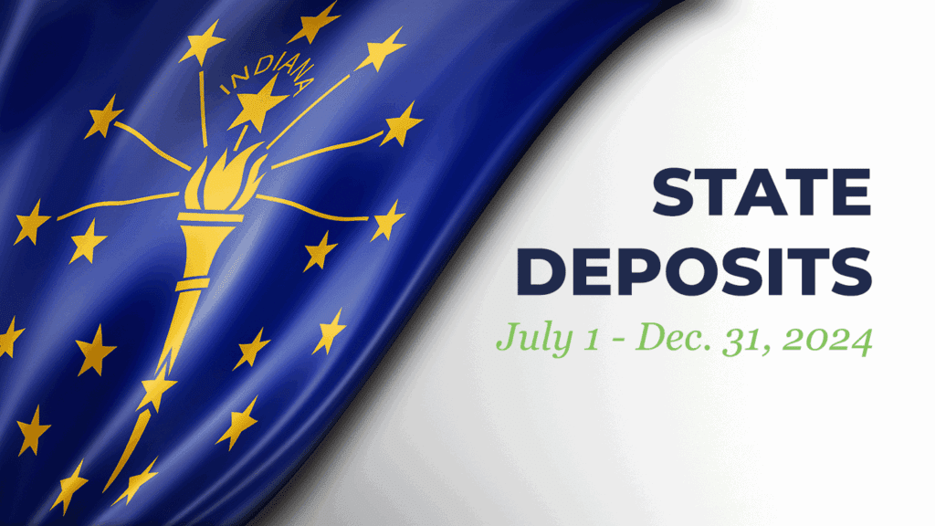 Semi-annual warrant clearing/savings accounts and average daily balance summary report for state deposits in Indiana Financial Institutions.