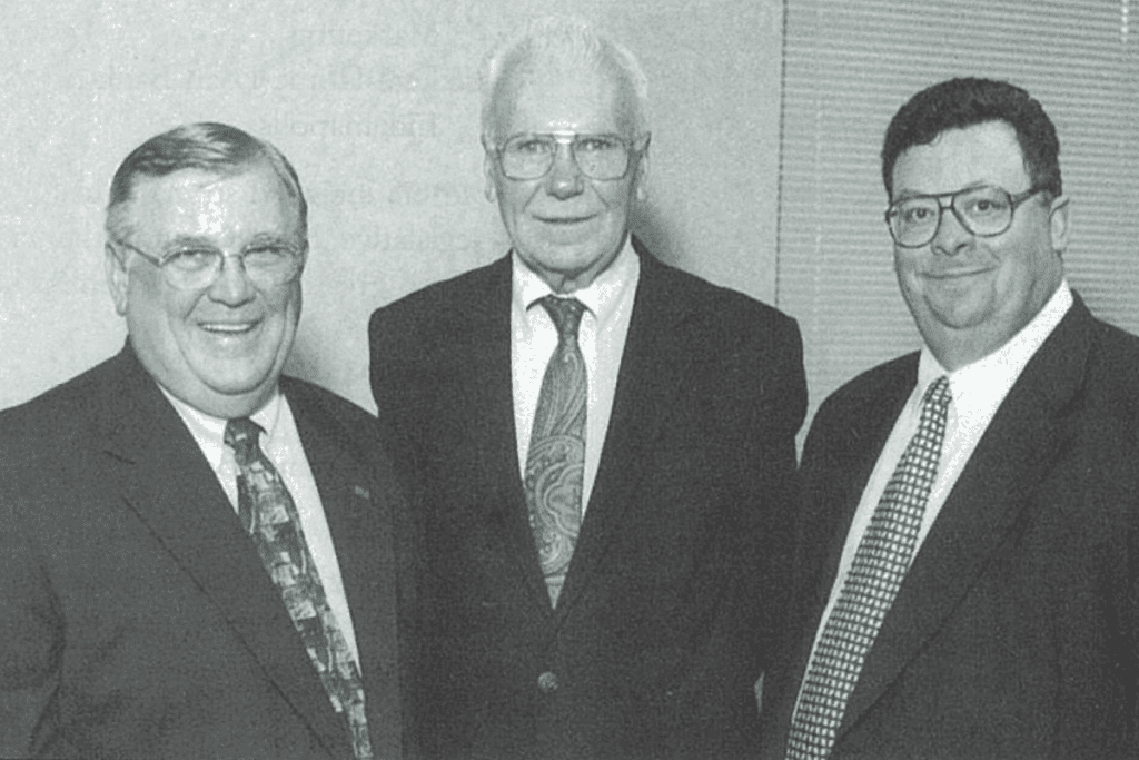 Three “generations” of IBA presidents come together at Bill King’s retirement reception. Pictured are (left to right): Bill King, IBA president from 1988-2000; Bob Nelson, King’s predecessor from 1967-88; and Jim Cousins, his successor from 2000-06. (IBA photo)