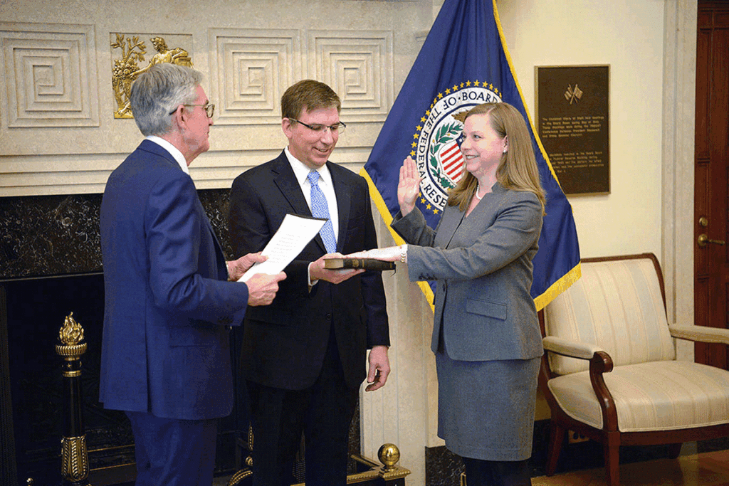On Nov. 26, 2018, Michelle W. Bowman was appointed to the Board of Governors of the Federal Reserve System to complete an unexpired term. Reappointed in January 2020, Gov. Bowman has been sworn in for a full 14-year term that ends Jan. 31, 2034. She fills a specific role created by Congress that provides for an individual from a community banking background to serve on the Board.