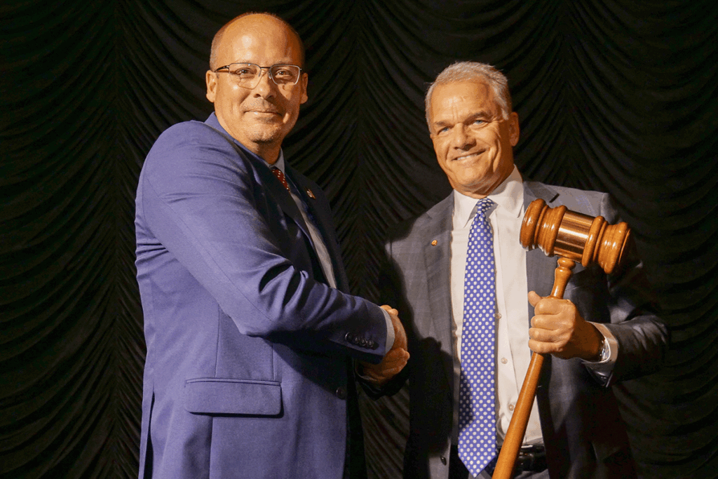 At the banquet, 2025 Chairman Matthew W. Howrey was honored for his contributions this year and was presented with a Distinguished Hoosier Award by Tom Fite, director of the Indiana Department of Financial Institutions, where Matt used to work before shifting from regulation to banking. Matt then ceremonially passed the chairman’s gavel to 2026 Chair David M. Findlay. David, his fellow officers and other directors were formally elected at Monday’s lunch.