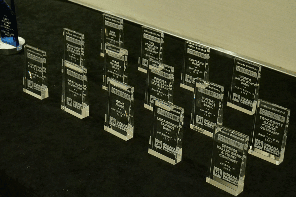 After those discussions, Indiana BANKPAC’s strongest supporters were recognized for their efforts. Fourteen banks were recognized with the BANKPAC 200% Club award, which is given to banks that contribute at least twice their fair share amount. In total, 78% of IBA-member banks participated in raising funds for the PAC through corporate or personal donations, with 69 meeting their fair share goal.