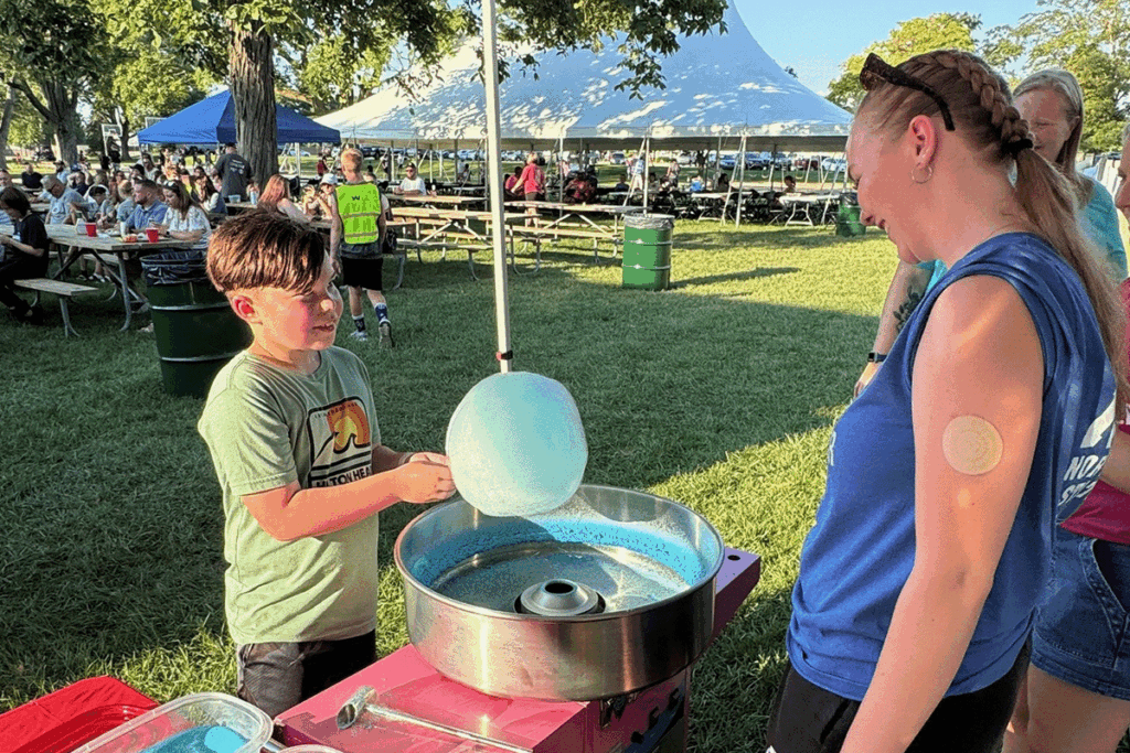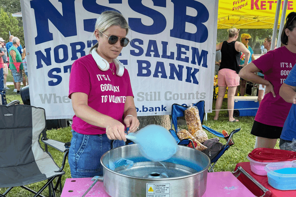 North Salem State Bank’s Commitment to the Community group volunteered and raised money for the Boone County Cancer Society during its annual Battle of the BBQ event and You’re Not Alone 5K on Aug. 9. Bankers helped guide runners and walkers along the 5K course in the morning, then served up snow cones and cotton candy at the barbeque that evening. A bank employee, Nikki Hollingsworth, is the Boone County Cancer Society’s board president.