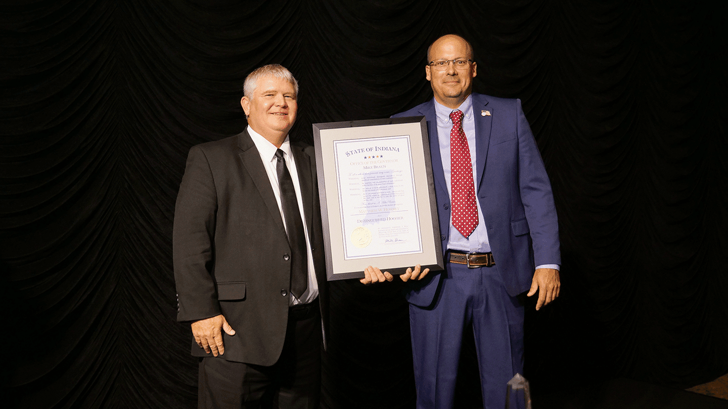 Matthew W. Howrey, 2025 chairman of the Indiana Bankers Association, has been honored as a Distinguished Hoosier by Gov. Mike Braun. The award was presented by Tom Fite, director of the Indiana Department of Financial Institutions, on Sunday, Sept. 7, 2025, during the chairman’s banquet at the IBA Annual Convention in French Lick. The Distinguished Hoosier Award is one of the highest honors given by the State of Indiana, granted at the discretion of the governor to outstanding residents for their accomplishments and contributions to their communities.